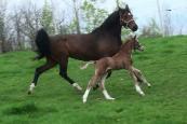 stallion Romanov, out of my wonderful young Stedinger/Prince Thatch mare. He is probably the boldest foal I've ever had with a freakishly good character and temperament. He's got nice, uphill conformation (strongly resembles Romanov) and if he's half as nice of a mover as his mother he will be one lovely horse. He was named Champion colt at his inspection and his forward-thinking movement was highly praised. He is a keeper - we don't usually keep colts but we have fallen in love with this one. Very sadly Romantico was lost in 2011 due to rare complications from Potomac. RIP my Little Bundle of Perfection. |