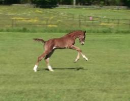 BENETTON DREAM / SANGRITA - "Bonaire FH" Very large, friendly and bouncy filly out of our super producing Stedinger mare. She is a full sibling to Brulee FH, born in 2011. This filly has absolutely outrageous movement and may be our fanciest moving foal we have had to date. Very sadly, we lost her at about 3 months old after she ingested something which caused an obstruction in her intestines. HOTLINE / EM KOLIBRI - "Hyperion FH" Beautiful, correct bay colt who strongly resembles Caprimond in his looks. He has an especially beautiful head, which is not always the case with the Hotlines. He is compact, refined, leggy and elegant with a lot of character. SOLD - Congratulations PJ.