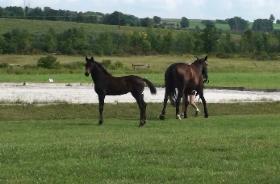 We are very pleased with the quality and beauty that we got from our first two breedings to him. This filly is black-bay with almost no white and is freindly and curious. She was named Champion filly at her inspection and was given an "Excellent" rating in all categories. Her elegance and elasticity were high praised. She is for sale. 20K See her ad at: http://www.warmblood-sales.com/HorseDetail.asp? HorseID=36540&UserID=2079