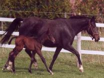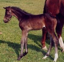 Champion Stallion in Oldenburg in 1987 and has 16 approved sons and 26 states premium mare daughters. He achieved a score of 9 on his trot, canter, ability to work and rideability. D'lady had a lovely dark bay colt with a perfect star and two hind socks. "Ceto" had a rough start to life after his mother developed Placentitis during her pregnancy. He was born dysmature and had to be helped up to nurse for the first few days. Thankfully he has no lasting effects from his ordeal. SOLD - Congratulations Rachel. MARONJO/SPS WARKANDA - "Meinhard" Huge brown colt (turning grey) by the Grand Prix stallion Maronjo out of our States Premium Warkant mare. He is a big teddy bear and so easy to deal with. SOLD - Congratulations Rachel. BORDEAUX / LESANDRA - "Beowulf" Bordeaux is by the famous Bolero out of a Grande dam and is currently competing at Grand Prix level dressage. Bordeaux was reserve champion at his 100 day testing and scored 145.96 in rideability! Lesandra is an Elite Eligible Mare and is the sweetest mare you could ever know. This colt should be a fantastic dressage prospect with a temperament that anyone could handle and should mature around 16.1 hands (a user-friendly size!). Comments from inspection: "This is a VERY fancy colt! Very typey, beautiful neck set, harmonious topline. EXTRAORDINARY hind end - rarely seen in a foal of this age!!" - SOLD - Congratulations Diana. |