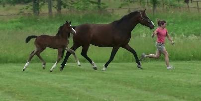 colt by Benetton Dream (Brentano II/ Rotpson/ Davignon). Benetton Dream is a Bundeschampionate winner, a 30-day performance test winner and was also the champion Hanoverian of the 3 y.o. stallions at the World Championships for Young horses in Verden. This colt has 3 super gaits, highlighted by an especially uphill canter and a friendly, amicable disposition. SOLD - congratulations Gigi.