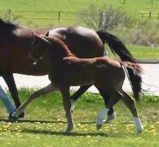 Dream out of a breed show Grand Champion and Mare Inspection Champion (Stedinger/ Prince Thatchxx) mare. This colt is very flashy with unique markings and outrageous movement. He is long legged and nicely put together with incredible suspension. He was named Champion colt at his inspection with high praise from the German inspector. SOLD - congratulations Lilly. BENIDETTO/LUME - "Bacardi FH" A TALL, refined and long legged colt by Benidetto, who was a premium stallion in Germany and Reserve Champion 6 yr old at the US National Championships. Benidetto is now scoring in the 70's at PSG as a 7 yr old. Lume is an Elite eligible mare by Londonderry/Davignon. This colt is the model of correct, uphill conformation and is very friendly. SOLD - Congratulations Krista.